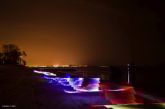 Inspiriert vom VHS Kurs Nachtfotografie habe ich zusammen mit Clubkollegen aus dem Foto Club Hamburg am Elbstrand mit Licht experimentiert. Dies sind ein paar der Fotos:
